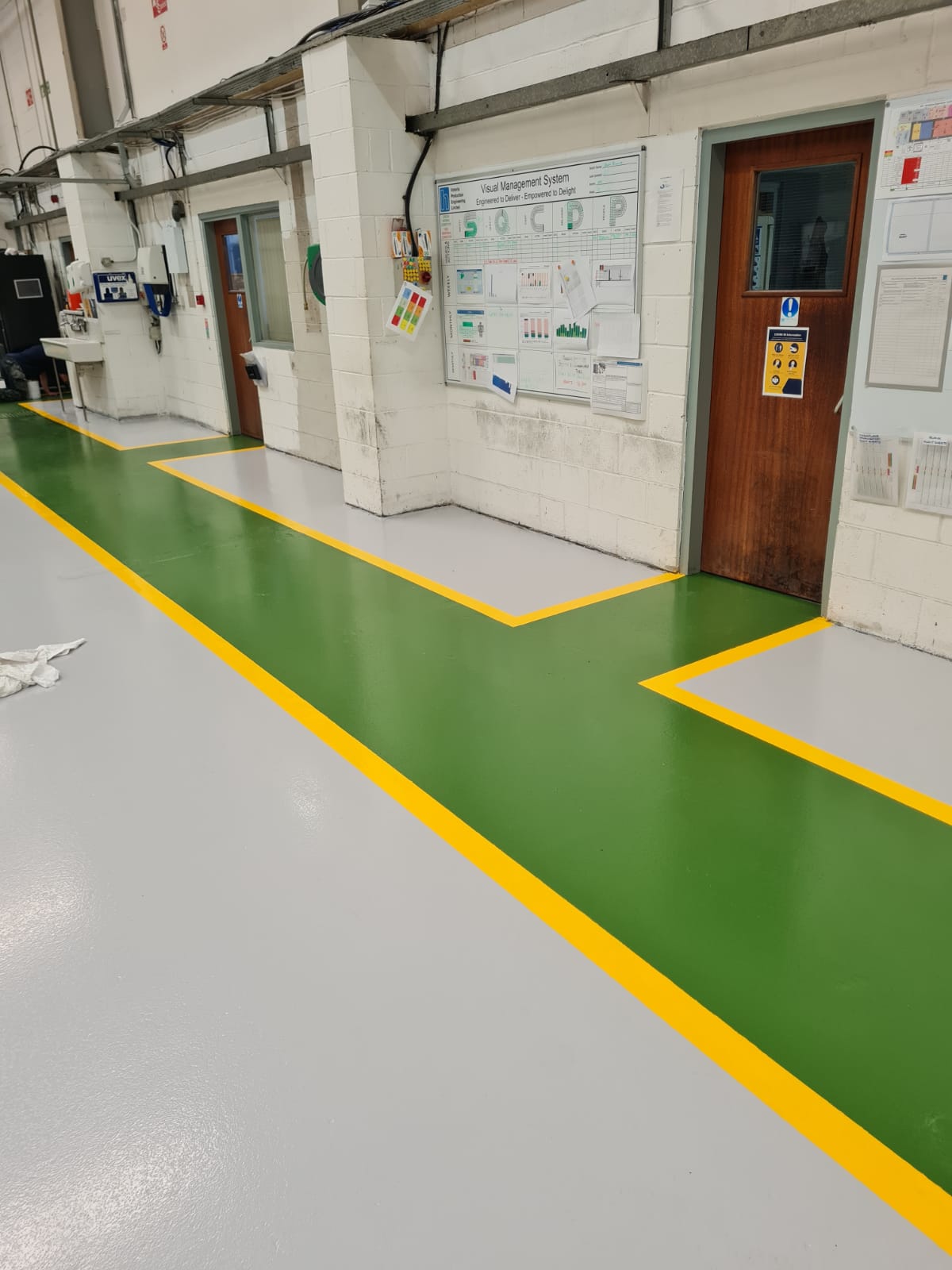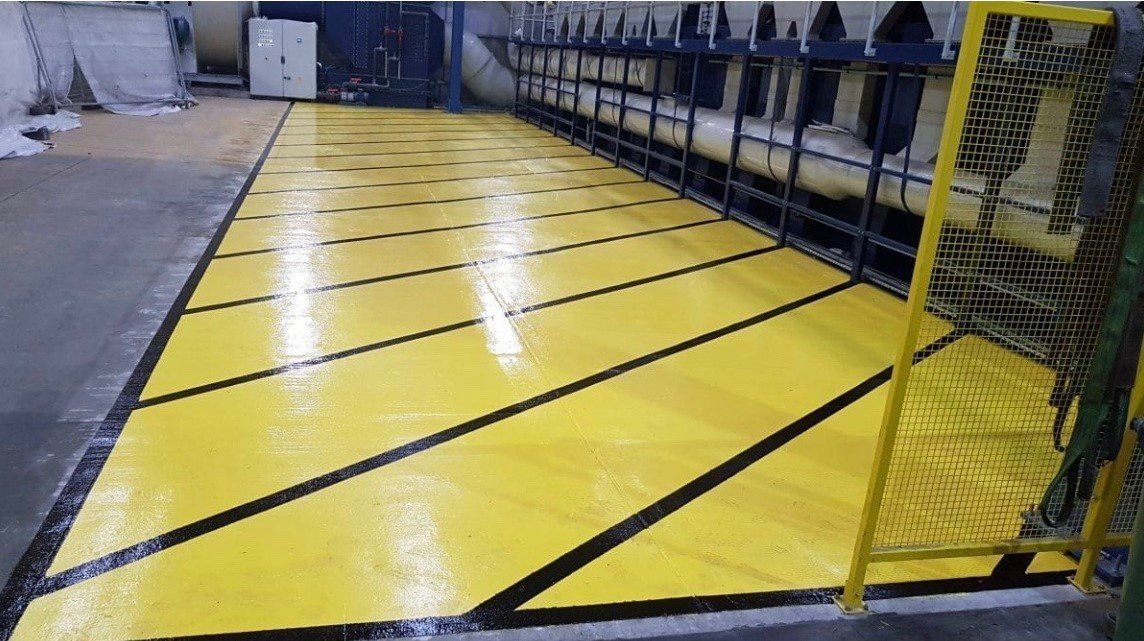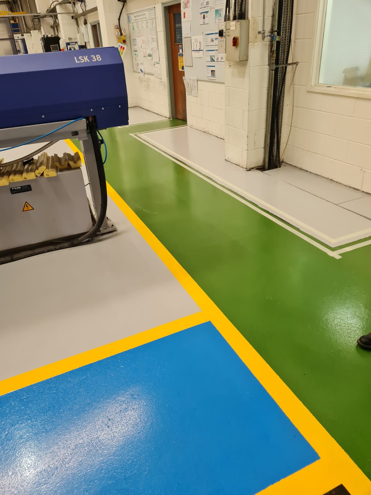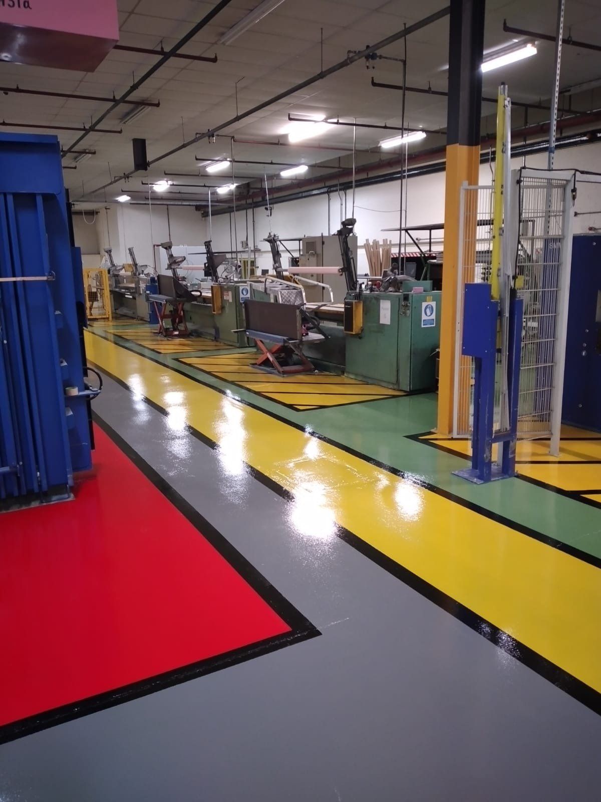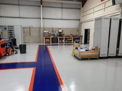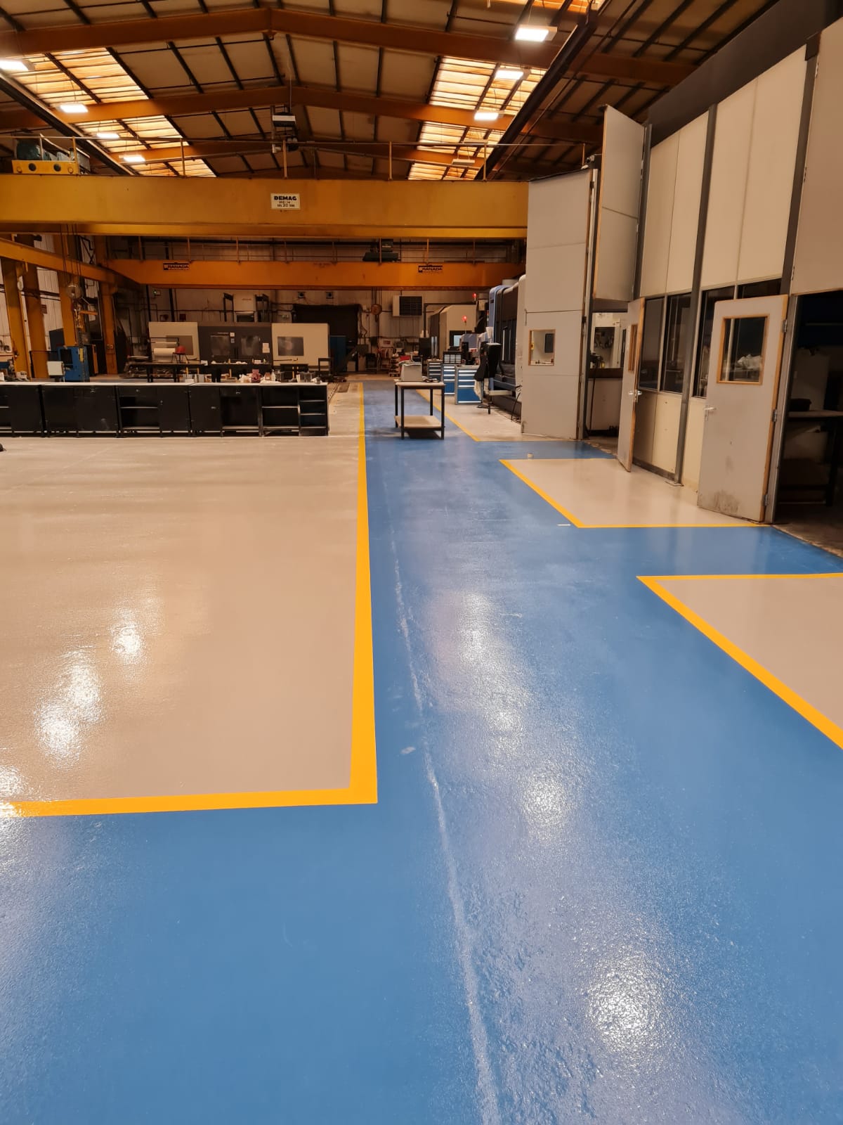 Our epoxy floor paint used in various colours for demarcation.